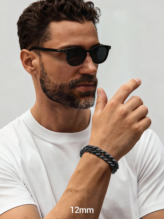12Mm Cuban Chains Bracelets for Men Black Chunky Stainless Steel Franco Link Bracelet Father Day Hand Bracelet Jewelry Birthday Valentine Graduation Gifts 7.5 Inch