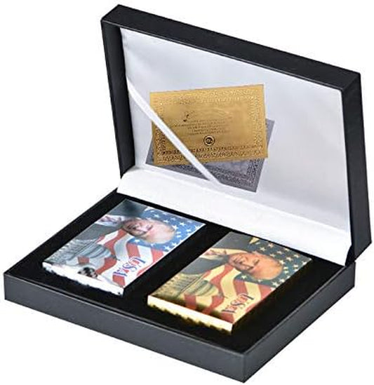 Donald Trump Playing Cards - Gold Plated Playing Cards Gold Plated Deck of Waterproof Poker Cards for Game for Table Games Good Gift for Friends, Men, Boyfriends (Gold&Silver W/Box)