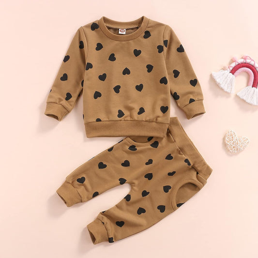 Newborn Baby Girl Long Sleeve Pullover Floral Sweatshirt Long Pant Outfits Autumn Winter Clothes (Love Heart, 6-12 Months)